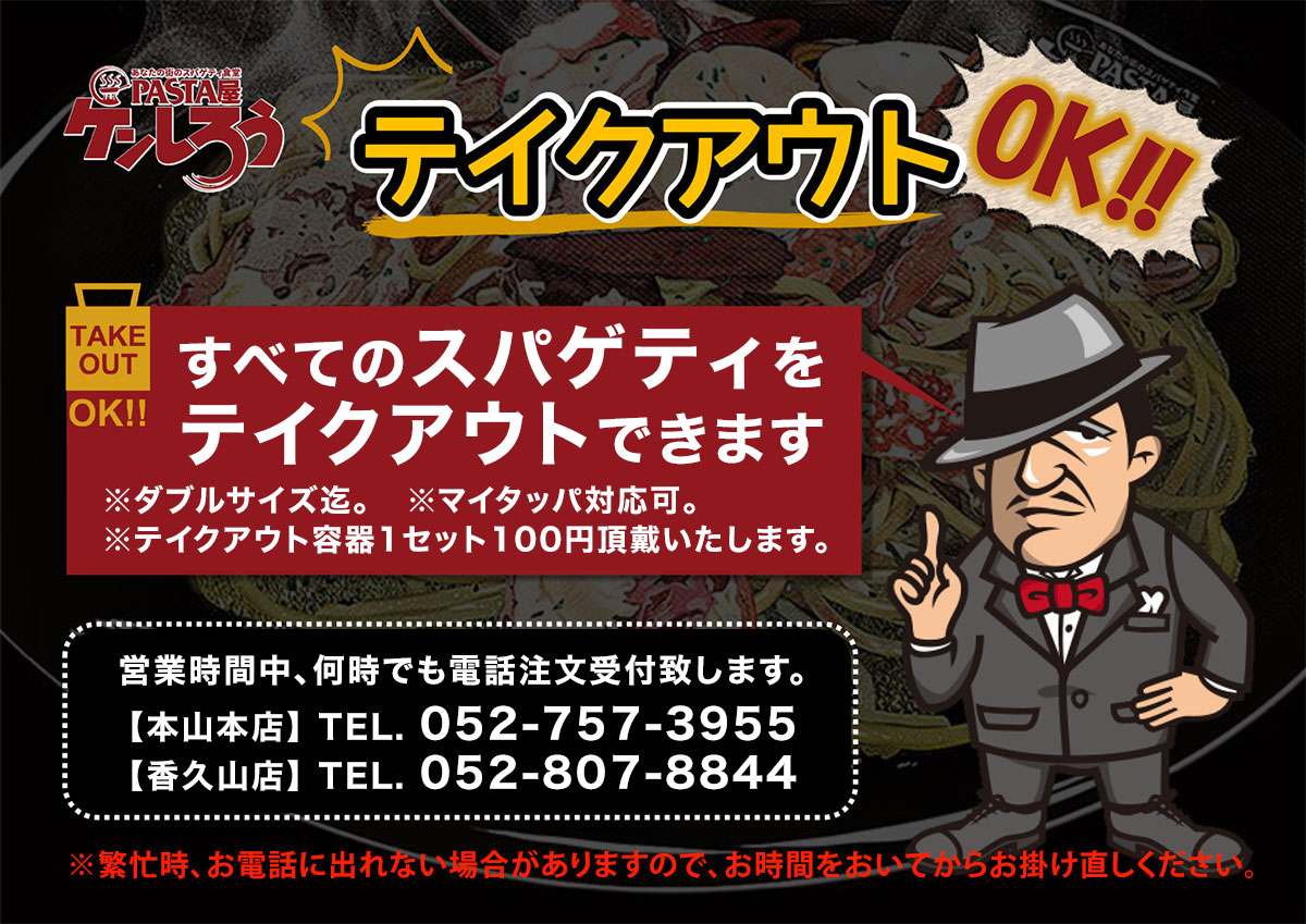 TEL.052-757-3955- ※テイクアウト容器1セット100円頂戴致します。